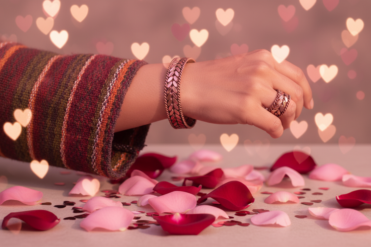 El Yapımı Motifli Saf Bakır Unisex Bileklik ve Yüzük Seti SPF-B-016