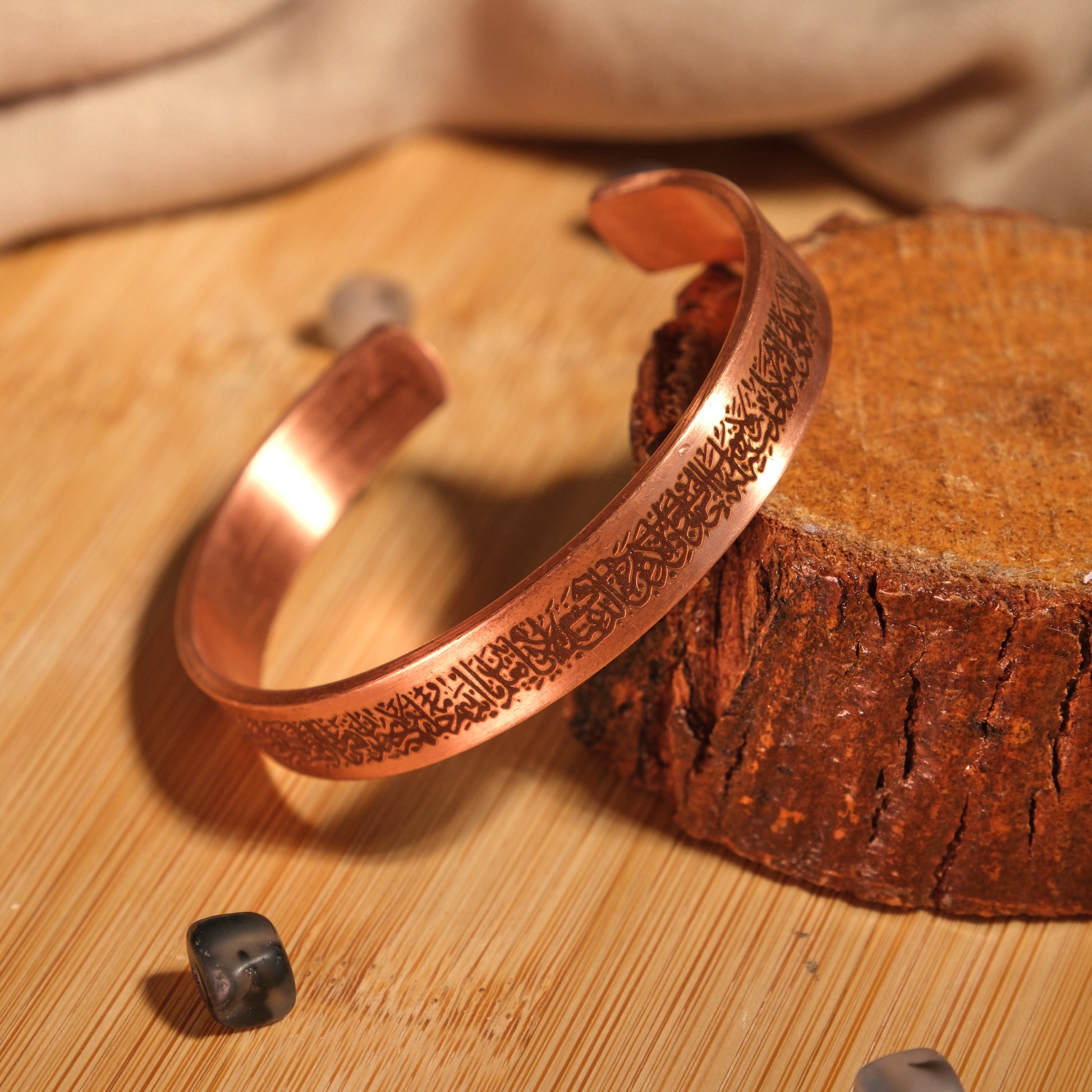 El Yapımı Ayetel Kürsi Motifli Saf Bakır Unisex Bileklik SPF-B-008